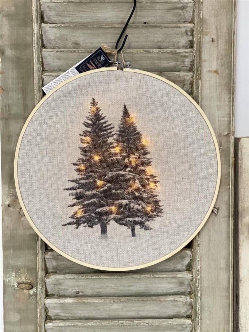 Holzrahmen Wand Leinenbild mit 15 LED Lichter Batteriebetrieben D30cm